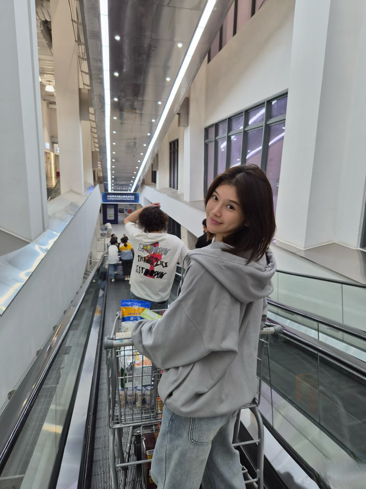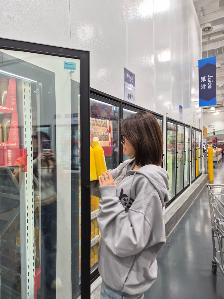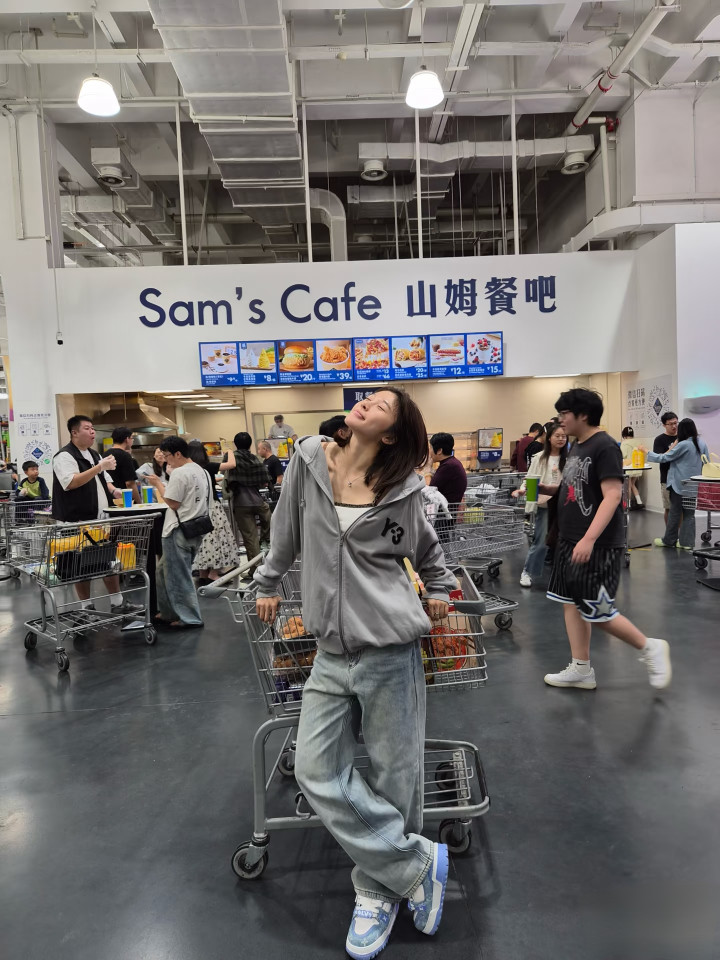 网上平台配资吴艳妮分享松弛生活, 灰卫衣搭牛仔裤逛山姆, 短发造型尽显灵动美